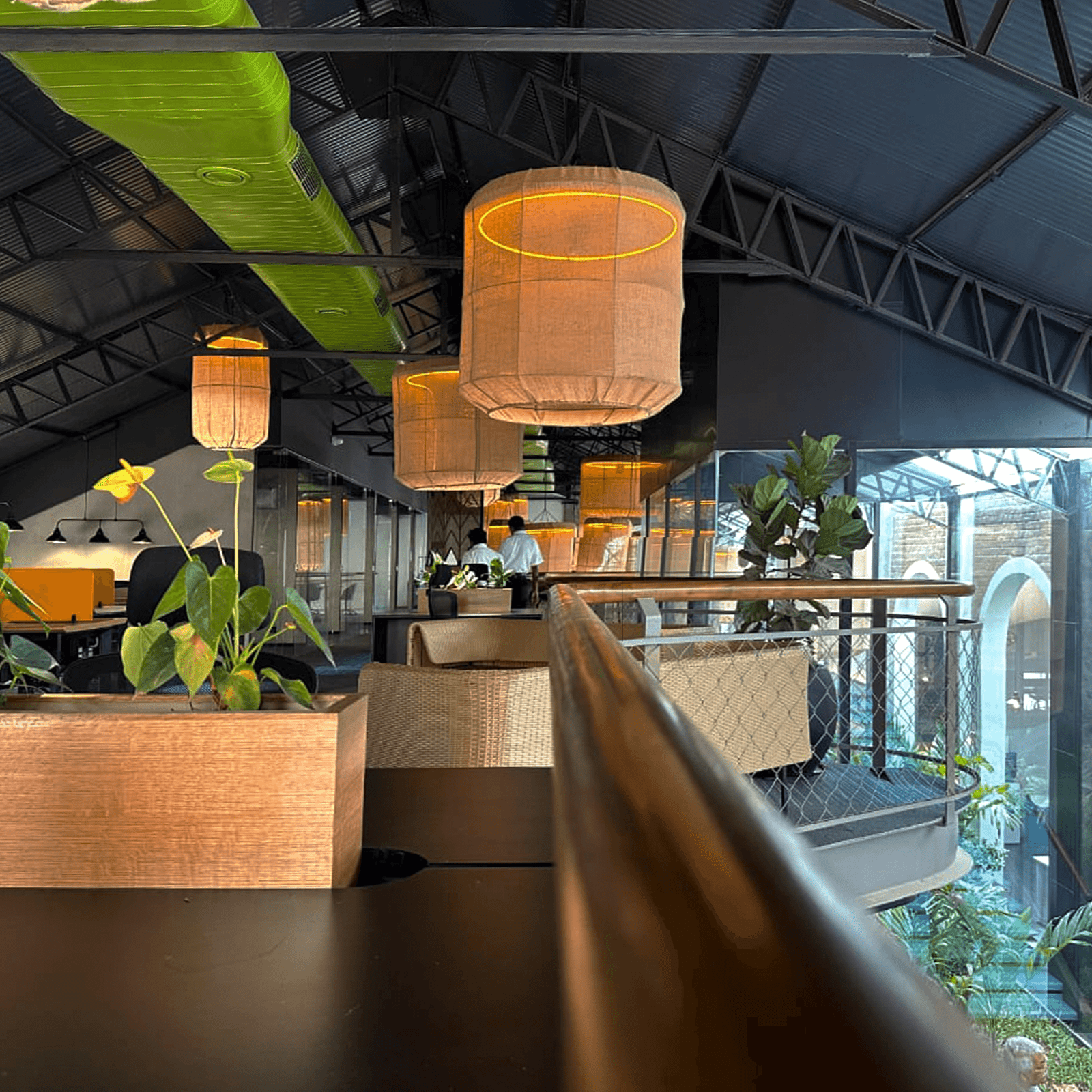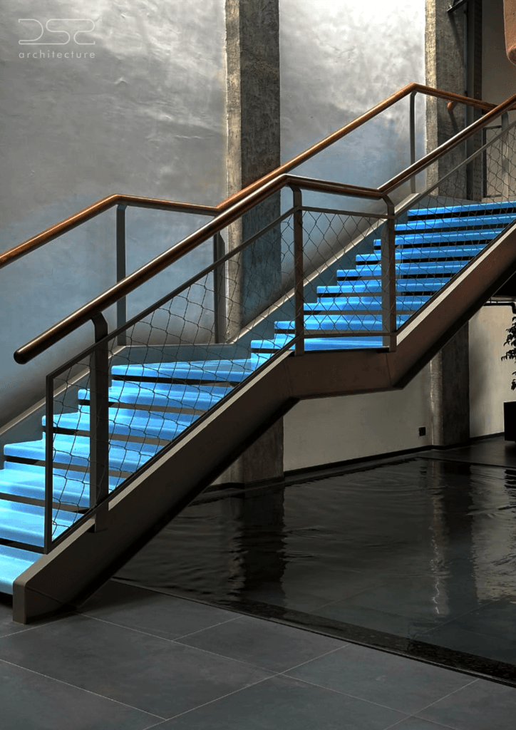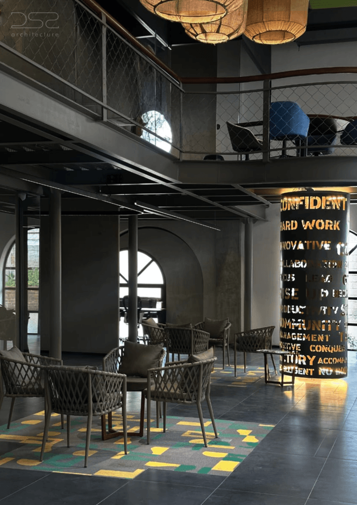 • Scrapped MS components were reused to articulate staircases, mezzanines, and industrial detailing, reinforcing the design’s raw aesthetic.