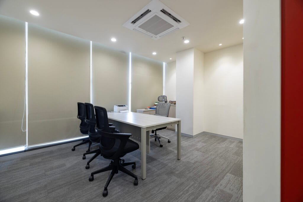 For Resaiki Interiors and Architecture Design Studio, the challenge has been to transform a linear floorplate into a balanced and cohesive plan. Through horizontal bifurcation and Vastu￾guided planning, the design brought coherence and flow, ensuring that every functional requirement aligned with positive energy and operational logic. The placement of drainage lines, restrooms, and service cores was mapped meticulously to preserve both efficiency and elemental harmony.