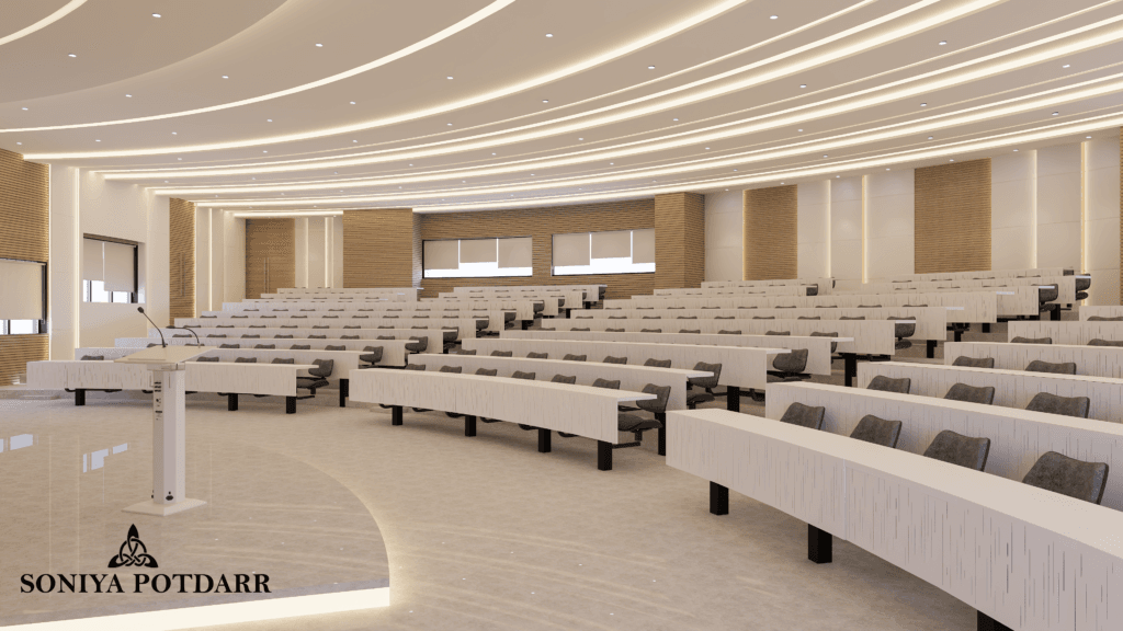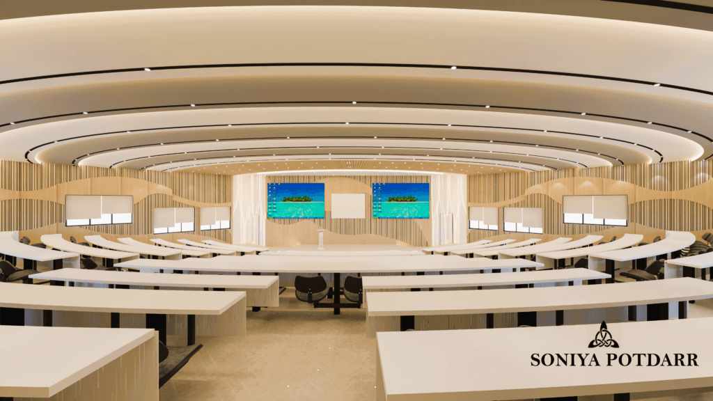 Additionally, our work on museums, high-tech lecture halls, and healthcare interiors has been instrumental in expanding the studio’s expertise. These projects demand a balance of aesthetics, user wellbeing, and long-term performance, and they have significantly influenced the evolution of Soniya Potdarr Design Studio into a multidisciplinary practice that blends design, technology, and innovation.