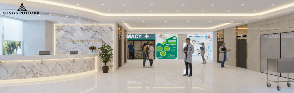 Super Speciality Hospital – A Contemporary Lobby Designed for Flow, Comfort and Visual Harmony