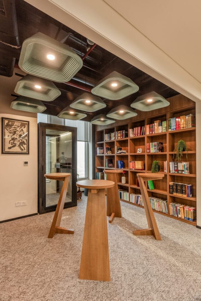 The Conference Rooms are equipped with advanced AV and switchable privacy glass perfect for high-stakes discussions. Informal corners, a wellness lounge and a coffee bar add lightness to a rigorous work environment, while the Library Zone acts as a quiet and contemplative retreat that encourages reading and reflection. Sapna further informs, “The biggest challenge was to maintain confidentiality without creating a sense of isolation. While law offices need privacy and acoustic control, they also seek warmth and openness. We resolved this by integrating smart glass partitions, acoustic ceilings and a soothing material palette that kept the environment connected yet composed. Executing these details within a live high-rise site in Mumbai required precise coordination and planning.”