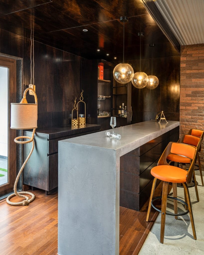 The terrace emerges as one of the home’s most dynamic spaces—a vast breakout zone designed for social interaction. Equipped with a cabana, water fountain, and generous seating, it acts as an extension of the interiors, blurring the boundary between inside and out. Elsewhere, even residual spaces have been carefully utilised: a Zen garden nestles beneath a balcony, while landscaped pockets appear throughout the house, reinforcing a strong connection to nature.