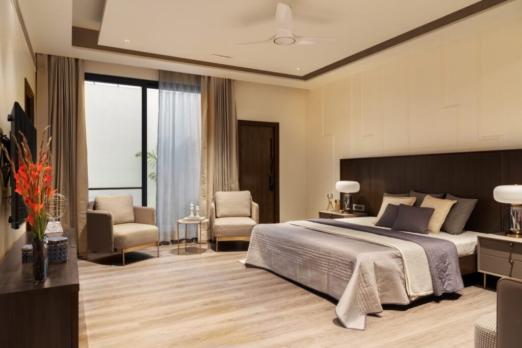 Set within one of Jaipur’s most coveted residential colonies, Rampath Residence spans an expansive 6,757 sq. ft. and stands as a refined reinterpretation of multigenerational living. Conceptualised and designed by Arjun Sara and Wamika Bansal, Co-Founders and Principal Architects of Design Dual, the home accommodates three generations under one roof with remarkable sensitivity. The design navigates the fine balance between individuality and togetherness, offering each unit its own privacy while maintaining an overarching sense of connection and continuity. Clean, contemporary lines anchor the architecture, while the spatial flow thoughtfully nurtures familial harmony.