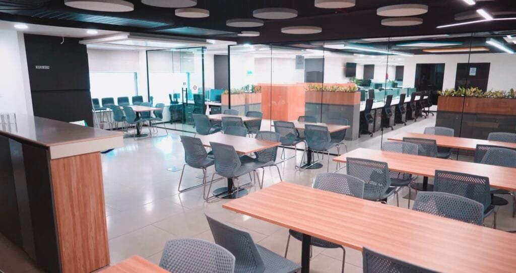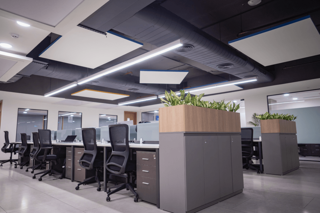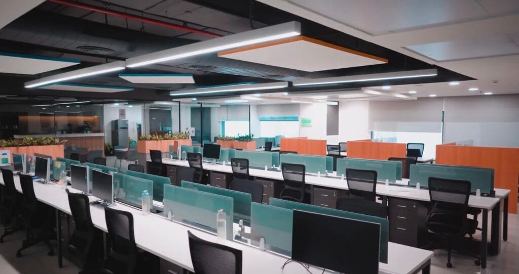 Energy efficiency is another area where we’re very mindful. We use LED lighting, plan spaces to make the most of natural daylight, and rely on energy-efficient HVAC systems supported by smart controls to manage power consumption sensibly. When it comes to materials, we’re quite deliberate -choosing low-VOC paints, recycled or recyclable materials, durable finishes, and modular furniture that last longer and reduce environmental impact. We also build in watersaving measures like low-flow fixtures and efficient pantry planning, especially in washrooms and cafeteria areas.”