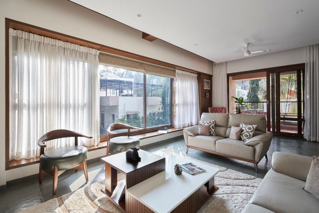 The Ramprasad Bungalow in Pune, designed by Principal Architect Ketan Gadgil & his team at Ketan Gadgil studio, is a space that breathes calm and quiet elegance. The home that spreads across, a 3,500 sq. ft. area at its heart, it is a pursuit of quiet beauty — finding sophistication in simplicity. Every decision reflects the belief that design is not about adding more, but about knowing when to stop — turning constraint into creativity and simplicity into timeless elegance.