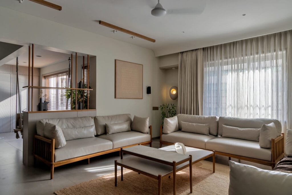 Designed by Dipen Dixit and Rutvi Dixit, Principal Designers at Design Radius, Ditvi is a Wabi-Sabi sanctuary where calm textures, warm woods, and curated simplicity shape a soulful modern home.
