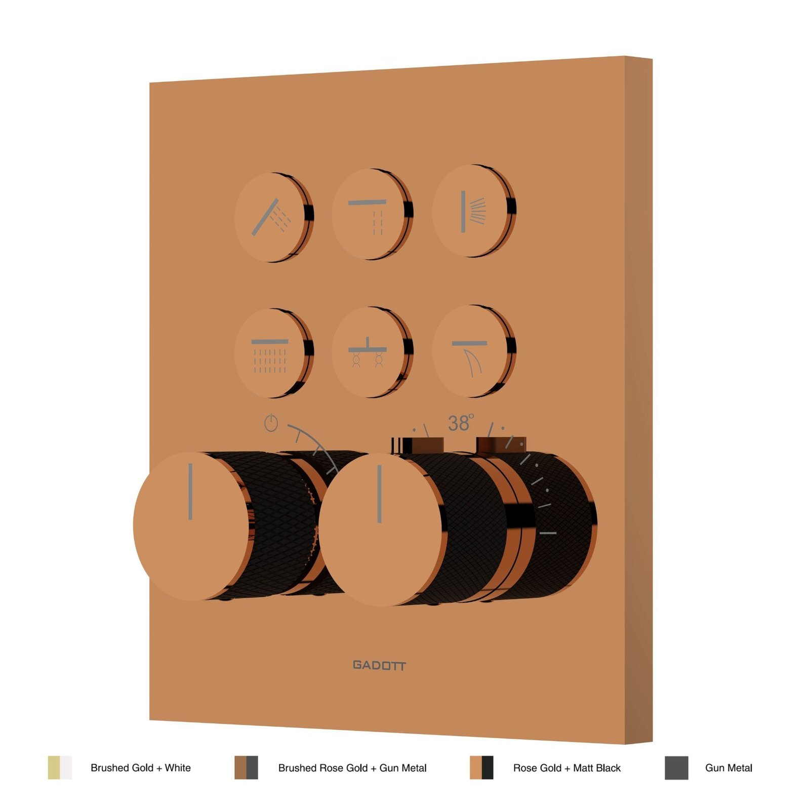 The versatility of the collection is reflected in its curated finishes, including Brushed Gold with White, Brushed Rose Gold with Gun Metal, and Rose Gold with Matt Black. These combinations allow designers and homeowners to personalise bathroom spaces according to their design preferences, whether aiming for understated elegance or bold contemporary contrast. The finishes are carefully selected to align with current interior trends while maintaining a timeless quality that ensures longevity in design.