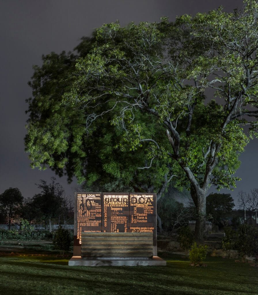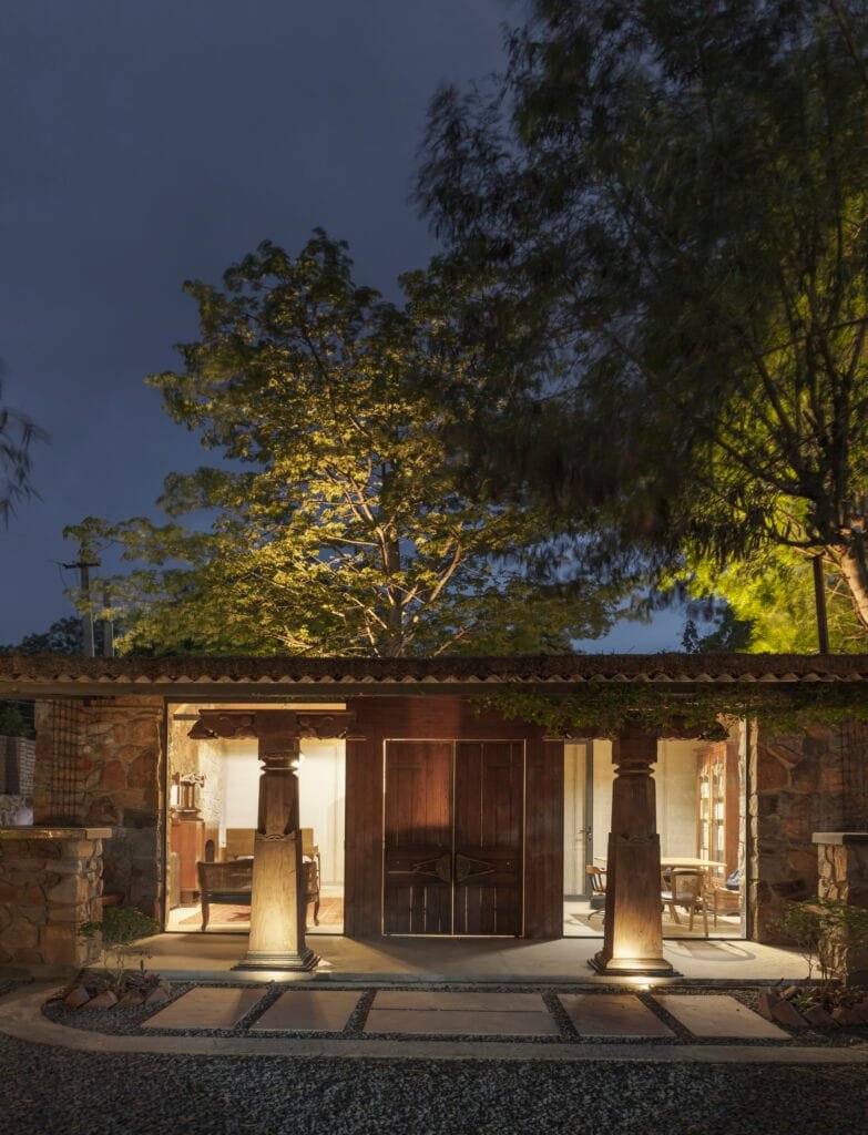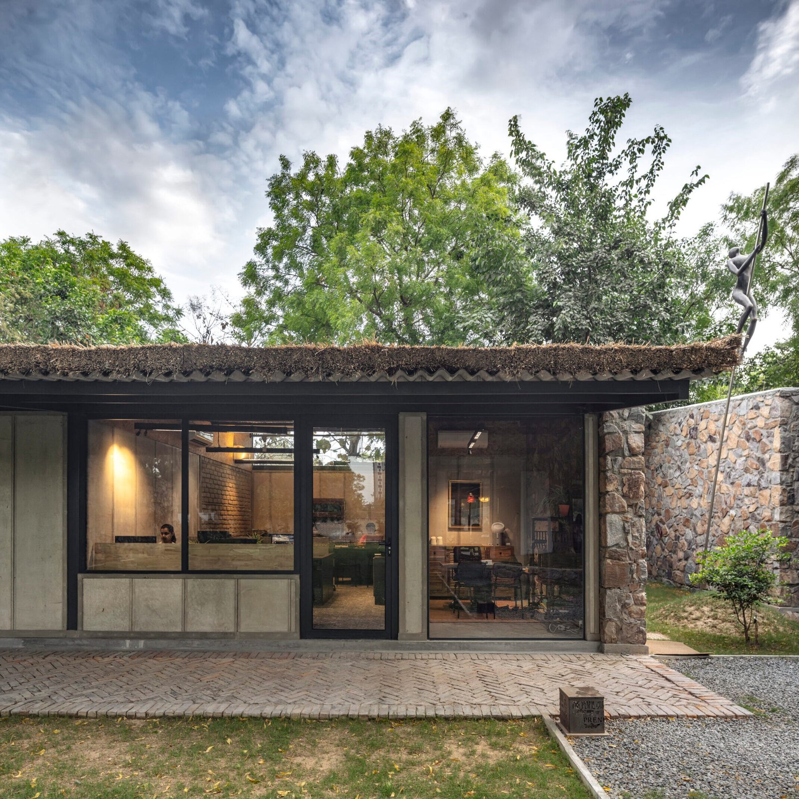 “The design approach stimulates creativity through a sensory interplay of sight, sound, touch, and smell. The layout is fragmented and connected through unbuilt, open spaces with inherited trees and organic pathways, promoting convenience and physical well￾being. As team members move between the studio, cafeteria, and washrooms, they encounter enriching glimpses of the outdoors, the crunch of gravel underfoot, and unplanned interactions with colleagues. The dynamic use of light and shadow during the day introduces varying degrees of shading in shared spaces and spillouts, while at night, the dense foliage casts intriguing shadows that lend an air of mystery, creating quiet, secluded areas for reflection. The structure encourages movement, offering breaks from the constraints of desk work. Shaded spaces provide shelter yet maintain a sense of openness, allowing employees to engage with nature—whether a squirrel darting across the lawn, the soothing calls of birds, or the refreshing drizzles during monsoons. Each space spills into a common area, perfect for hosting gatherings of clients, artists, and industry experts, embodying the firm’s commitment to contextual relevance and social responsibility.” Says Rahul Bansal.