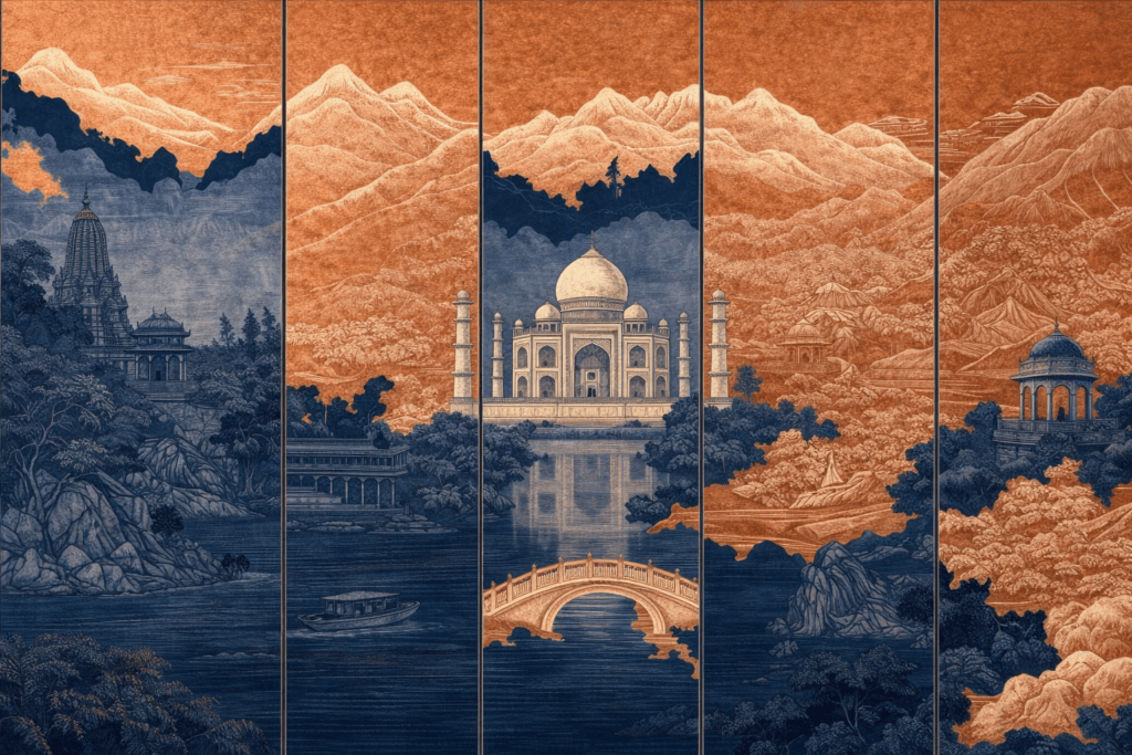 • Muted chromatics: Dusty blues, olive greens, and softened terracotta add warmth without overstimulation.
