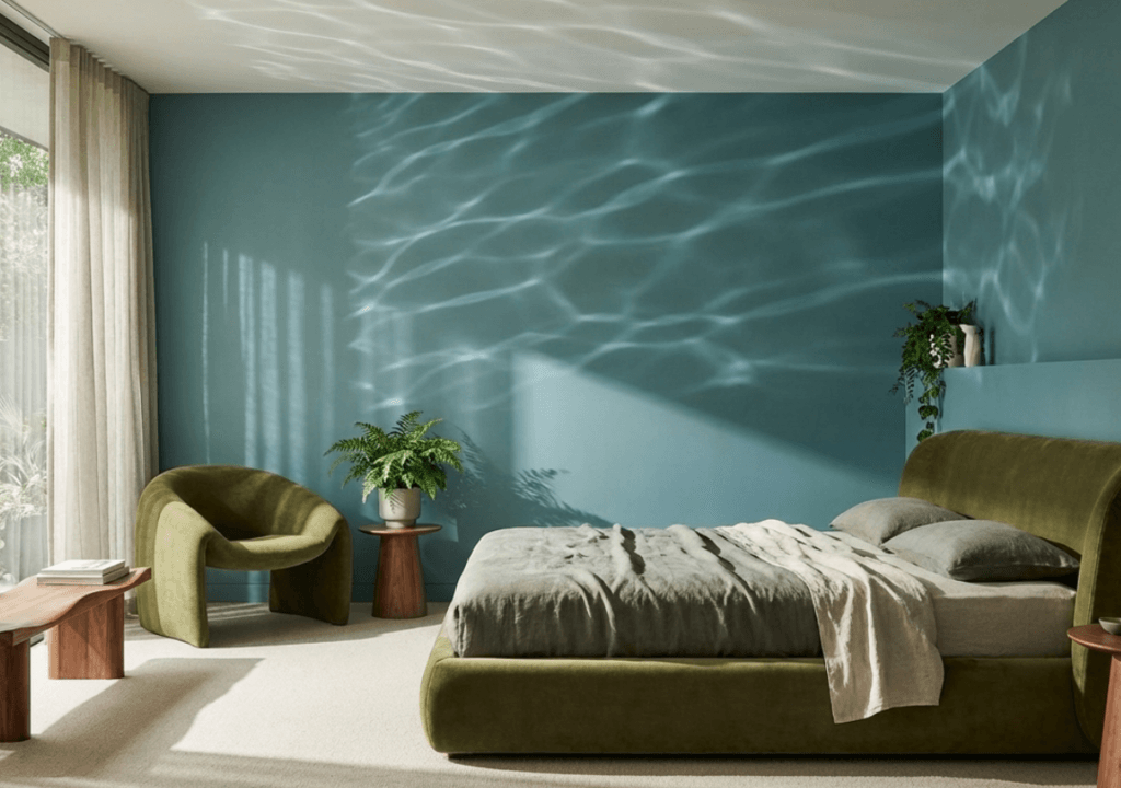 • Mineral hues: Chalk, limestone, weathered sand, and atmospheric blues add authenticity and depth. “Natural colours reduce stress, improve focus, and provide a psychological retreat,” explains WGSN. Visualise teal accent walls reflecting sunlight, moss-green furniture, and artworks inspired by textures found in forests, rivers, and skies—a bridge between indoor spaces and the restorative power of nature.