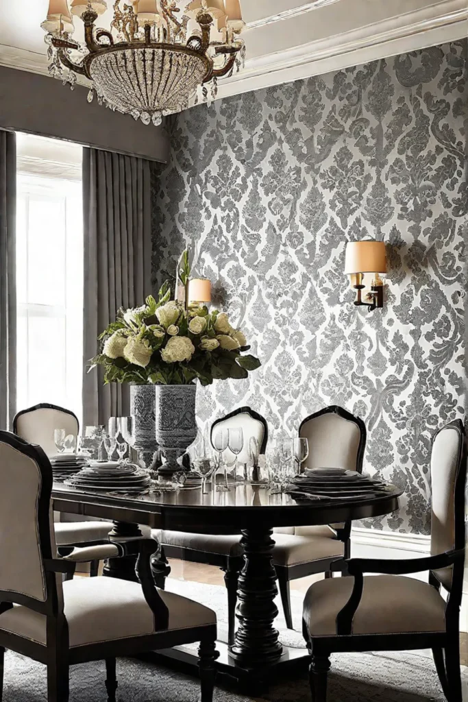 How does wallpaper transform the dining room into a more expressive or memorable space?