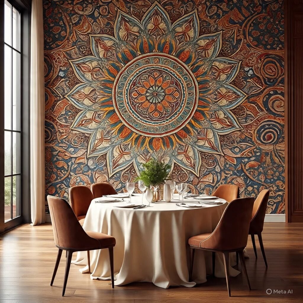 For smaller nooks, we recommend airy designs with lighter shades and refined detailing to open up the space visually while adding charm. In contrast, a grand dining room can embrace statement wallpaers—bold patterns, metallic accents, or richly layered textures—that command attention and create an aura of sophistication. The key is proportion— matching the scale of the design with the scale of the room.