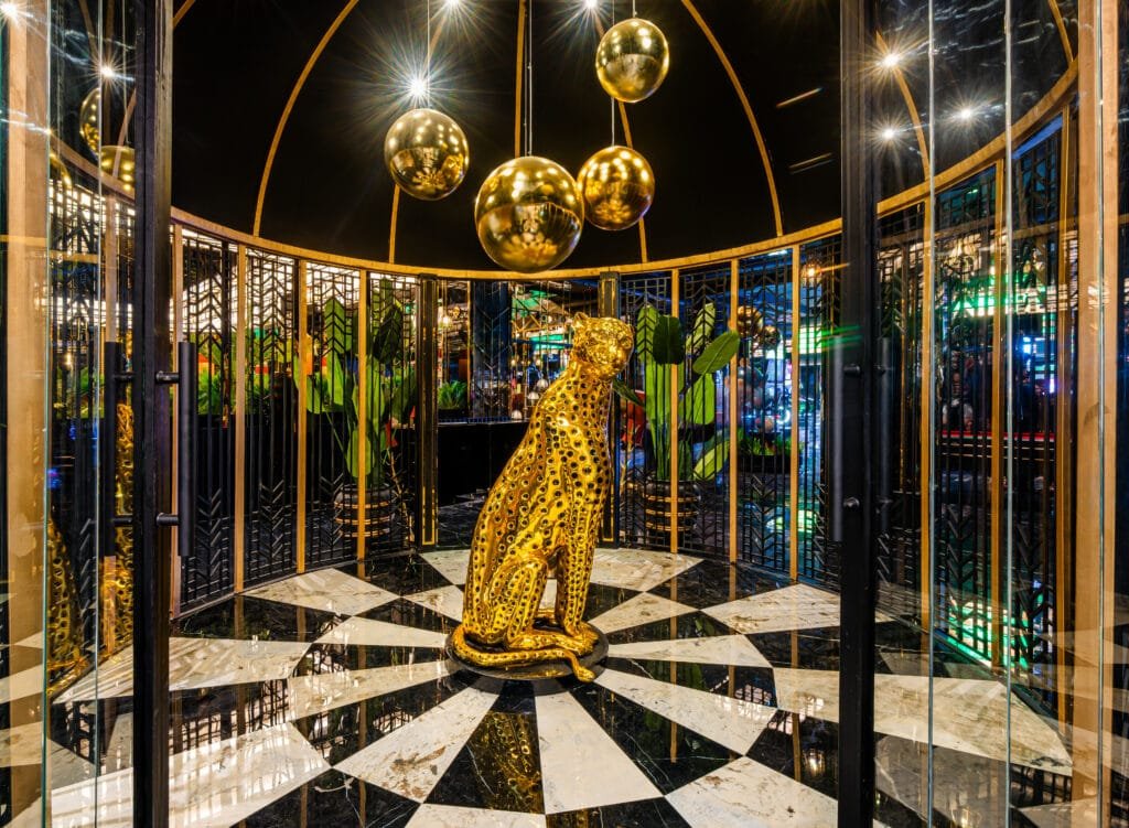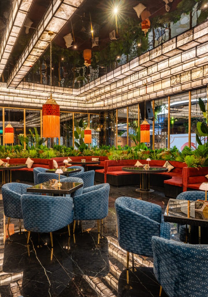 The design borrows from old-world casinos and grand palaces, but reimagined with contemporary materials, dynamic lighting and global styling cues. This creates a theme that feels timeless, glamorous and playful. Each venue is a study in curated indulgence, where immersive design and sensorial storytelling converge. Inspired by the grandeur of old￾world casinos and Art Deco elegance, the interiors reflect modern opulence; black marble textures, gold-trimmed archways, rich emerald lighting, and nostalgic yet contemporary detailing. Picture black marble textures, gold￾trimmed archways, rich emerald lighting, and Art Deco details, a space that nods to nostalgia while standing firmly in the now.