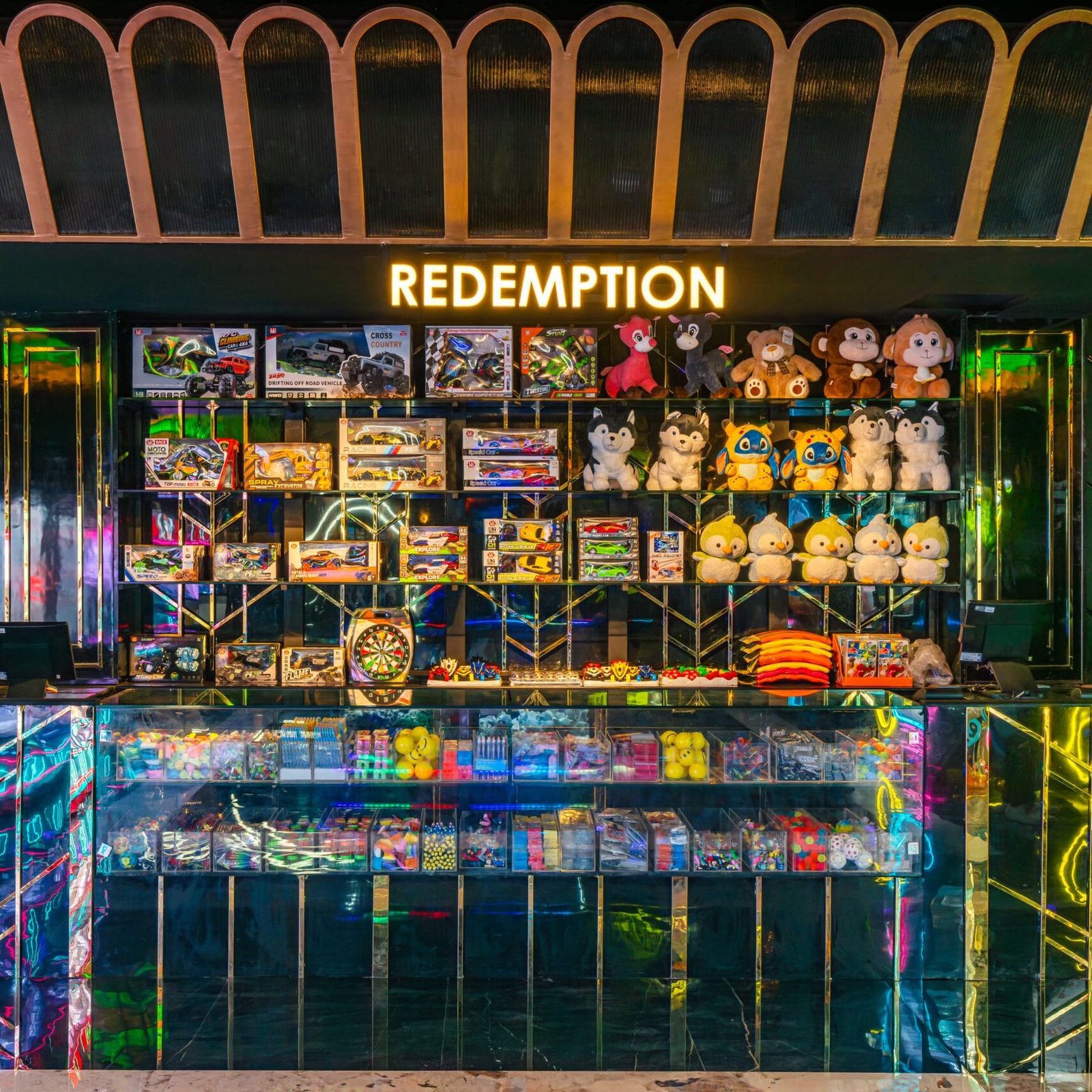 The Arcade Zone is a buzzing, high-energy area with the latest global arcade titles. The design uses neon trims, reflective surfaces and an open layout to keep sightlines alive.