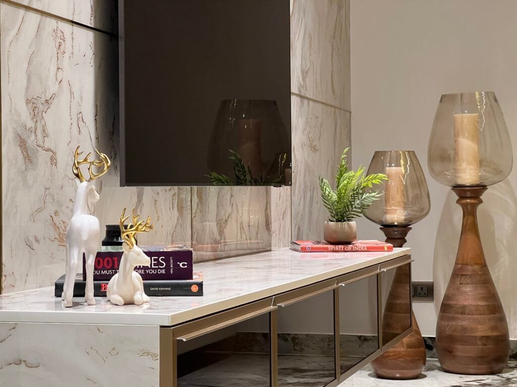 The renovation of this 3 BHK Penthouse wasn’t skin-deep — it was structural, strategic, and soulful. Ceilings were reimagined to conceal complex rerouted services. Flooring was overlaid on the existing marble with zero tolerance for error. “Walls were repositioned, sightlines reframed, and lighting completely redesigned to orchestrate a new spatial rhythm. This was a home broken down to its bones — and rebuilt with clarity, intention, and edge”, informs Swathy.