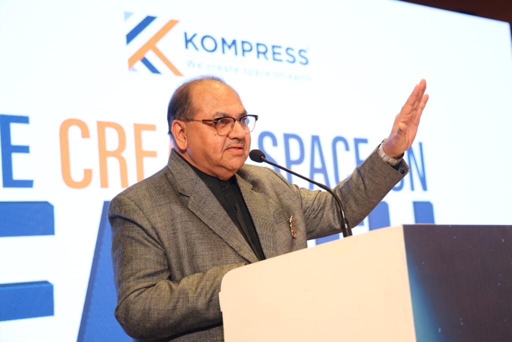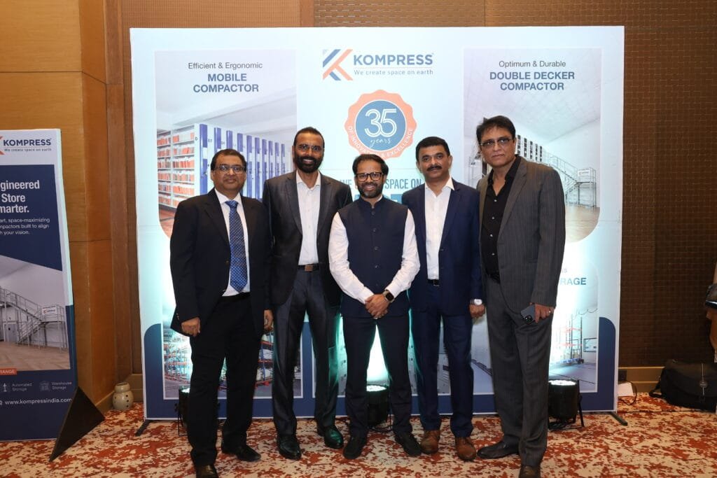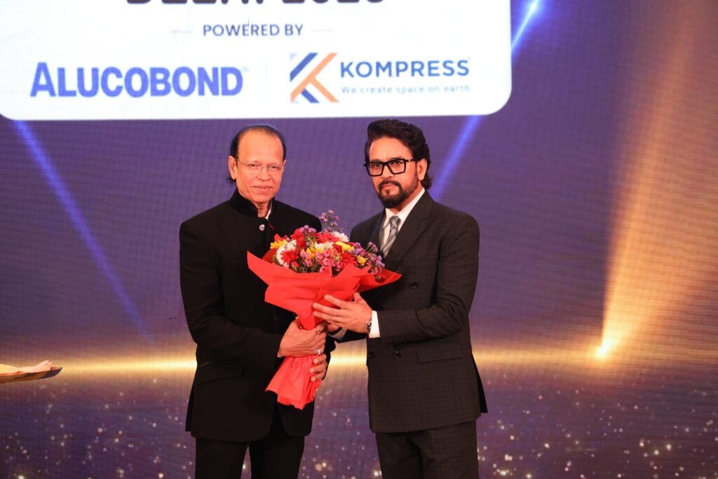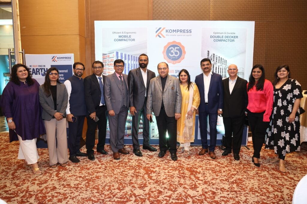 The spotlight then turned towards the event’s key partners, ALUCOBOND and Kompress India Pvt. Ltd., whose brands have deeply influenced the built environment in India and beyond. An immersive AV on ALUCOBOND traced its journey as a global trailblazer in Aluminium Composite Material (ACM), redefining architectural façades since 1969 through innovation, durability, and an ever-evolving palette of finishes. This was followed by a compelling AV on Kompress India Pvt. Ltd., which chronicled the company’s pioneering role in advanced storage solutions—from mobile compactor systems to pallet racking and highperformance warehouse systems. Headquartered in Mumbai and with a footprint extending across Asia, Africa, Russia, the UAE, and the USA, Kompress has transformed storage from a functional necessity into a science of space optimisation. Later in the evening, CMD Rajesh Gandhi and VP – Sales & Marketing, Shekhar Aggarwal, were invited on stage and acknowledged for their visionary contribution to the storage and material-handling domain.