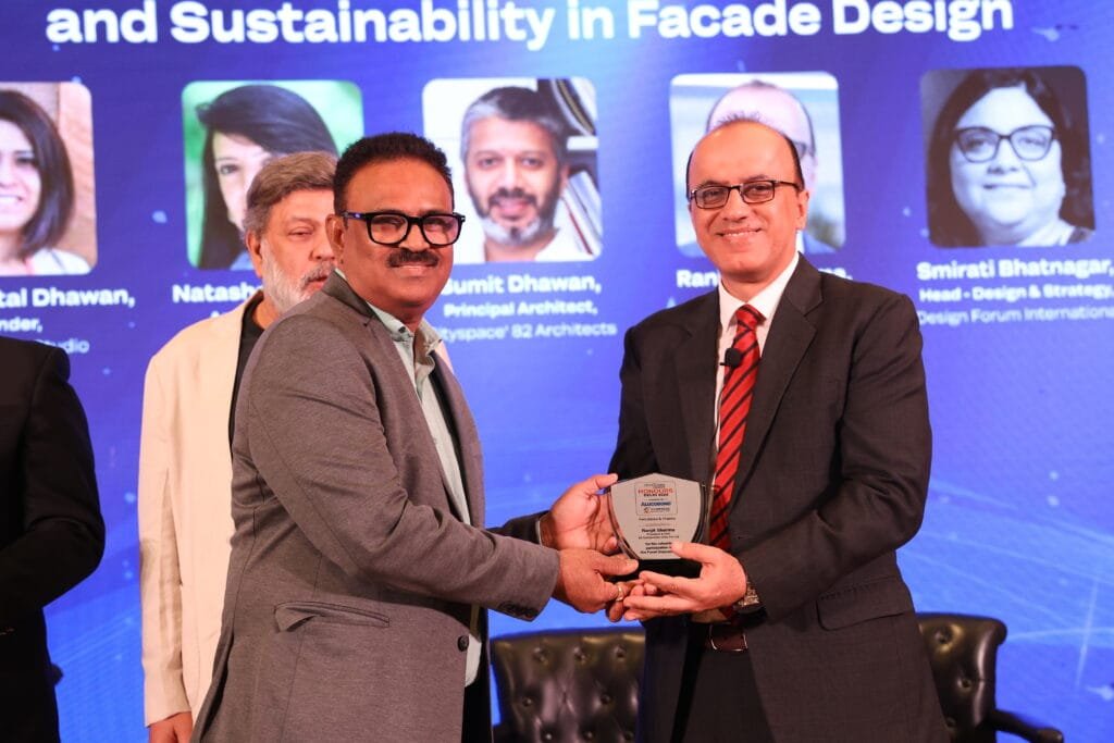 The intellectual tempo of the evening was further elevated by the second knowledgesharing series titled “Beyond Aesthetics: Prioritising Safety and Sustainability in Facade Design.” Chaired by senior architect Ar. Vivek Gupta, the session brought together Ar. Anika Mittal Dhawan of Mold Design, Ar. Natasha Kochhar of LTDF, industry veteran Ranjeet Sharma of 3A Composites India Pvt. Ltd., Sourab Dalal, Co- Founder, DPA and Ar. Sumit Dhawan of Cityspace’82 Architects. The discussion explored performance-led façade systems, fire safety, long-term durability, circular design principles and the emerging expectations from façades in a climatechallenged world. It offered the audience a forward-looking perspective on how façades can move beyond visual expression to become resilient, safe, and sustainable envelopes for contemporary buildings.