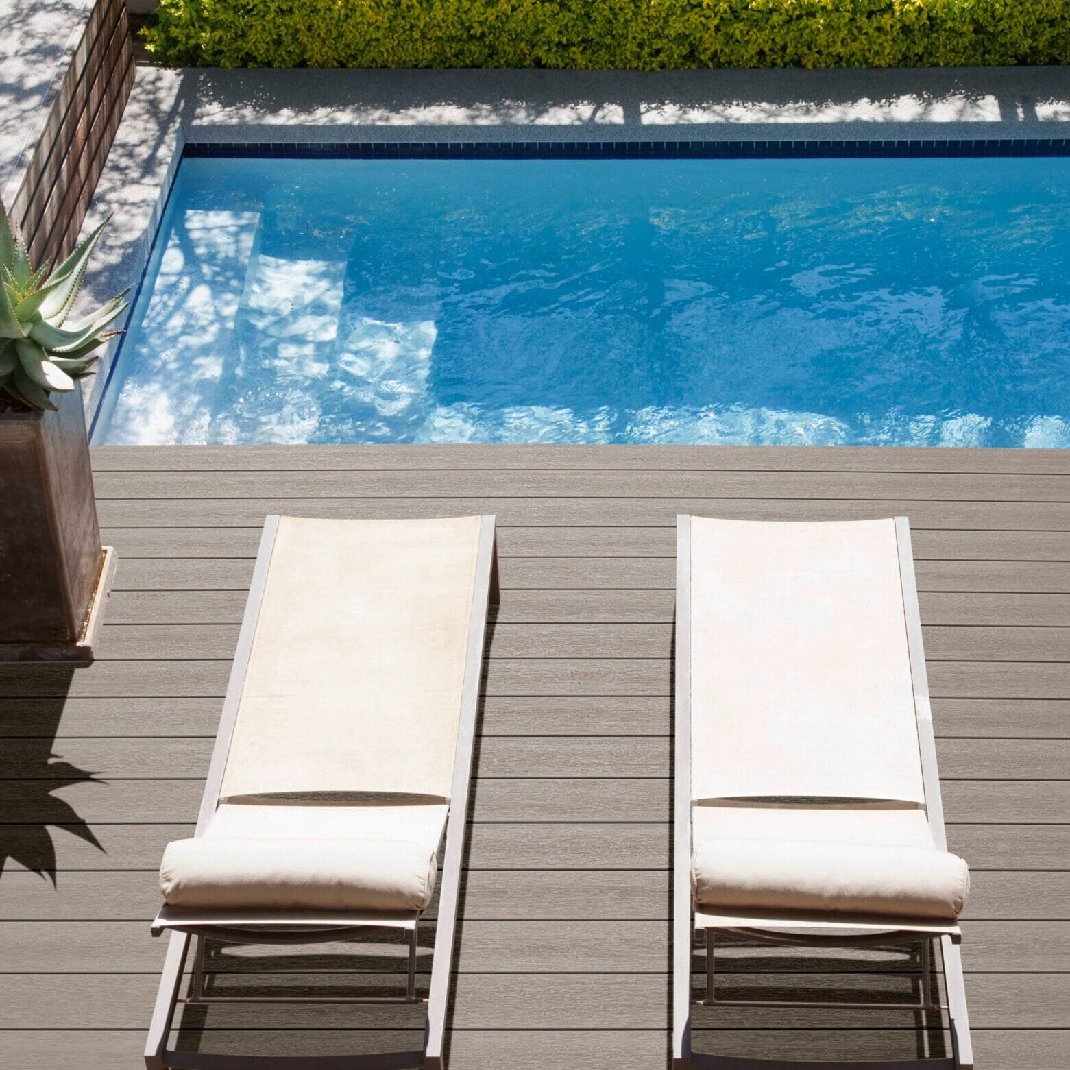 A key highlight of the Terrafina range is its extra-wide 400 mm planks with lengths exceeding three metres- dimensions that are rarely available in conventional decking systems. This larger format significantly reduces visual breaks, creating a calmer and more expansive surface. Compared to traditional decking boards that typically range between 120 mm and 150 mm in width, Terrafina’s scale introduces a more architectural and contemporary aesthetic, making outdoor spaces feel more aligned with interior flooring design.