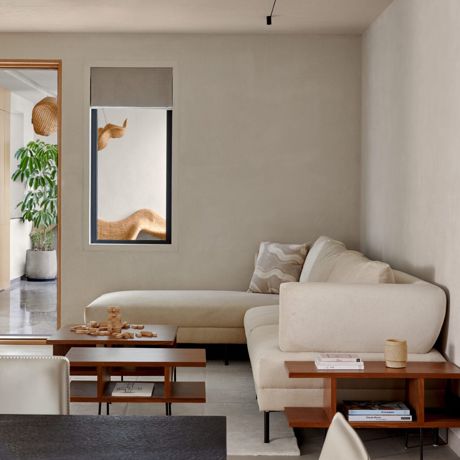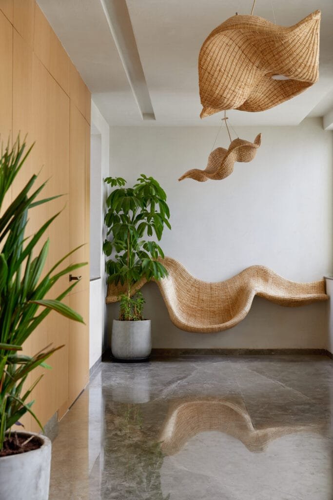 Nilasha explains, “Our clients were drawn to a minimal, Scandinavian aesthetic and shared our love for natural materials. By blending this sensibility with locally sourced materials and craftsmanship, we shaped a layered expression of modern Indian living – one that feels serene, rooted, and tactile.”