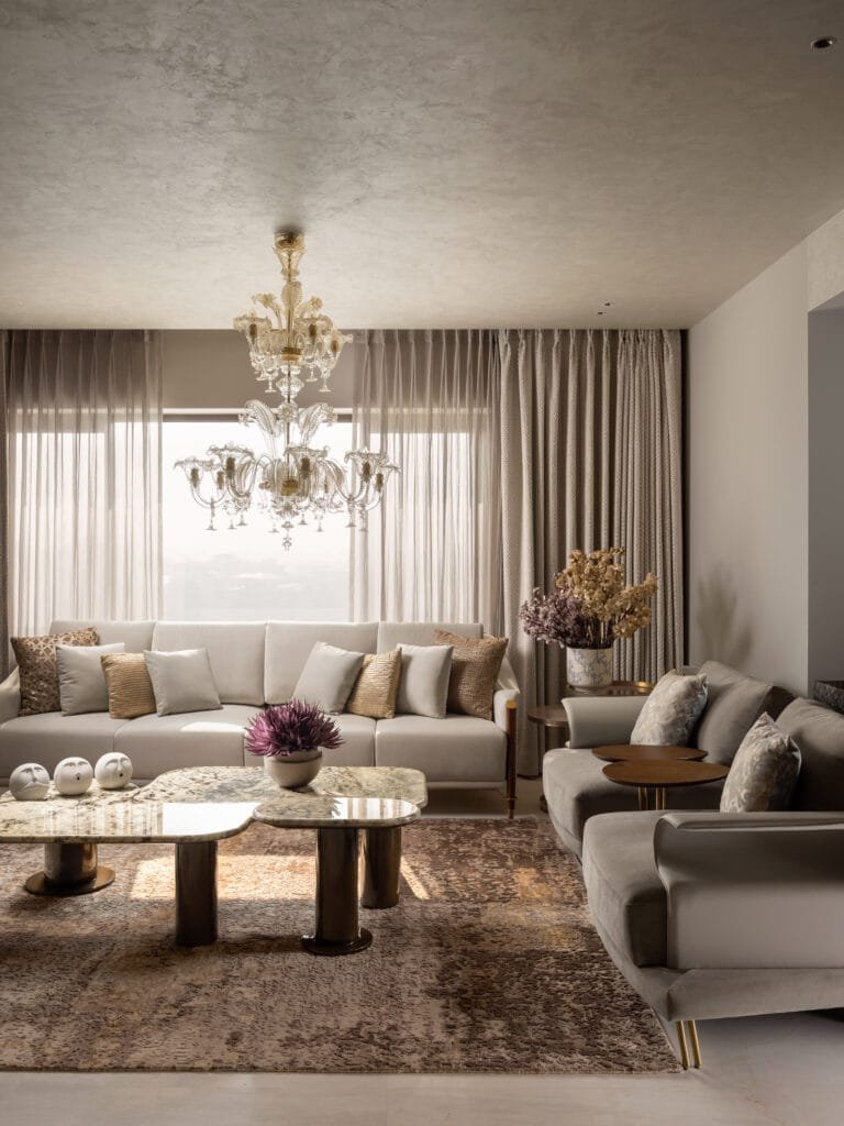 Designed by Parnika Julka, Padmaja Singh and Harshil Kapur, Co-founders and Principal Designers, Attico Homes, The Garg Residence in Gurgaon crafts a tale of harmonious elegance cushioned with stylish comfort. Spread across an area of 7000 sq. ft. and Carpet area of 6000 sq. ft., the concept of the project revolves around modern luxury infused with artisanal heritage, creating an apartment that feels both globally sophisticated and deeply rooted in Indian craftsmanship. Sharing insights on the client’s the client’s brief and requirements, Parnika says, “The client envisioned a modern, luxurious apartment that balances youthful energy with refined elegance. Each space was to feel distinct, yet unified under a larger design narrative. The brief emphasized the need for every room to tell its own story— through a unique color palette, material mix, and layout—while maintaining a visual and experiential harmony across the home.”