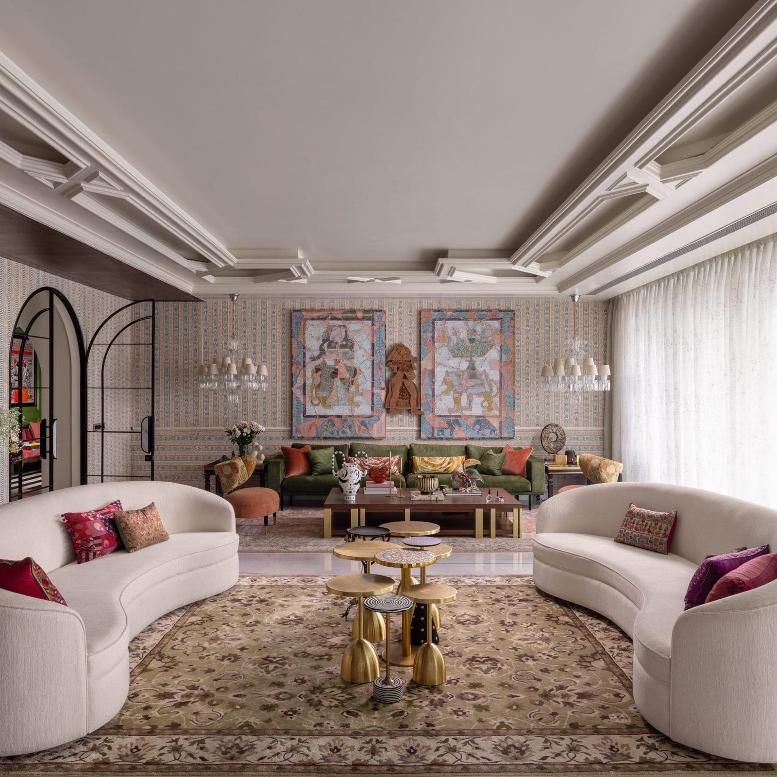 The House of Collected Time, a residence in Delhi, offers a bold answer. Designed by Disha Subramaniam, Founder and Principal Designer of her eponymous studio, the house began with a simple resolve: to avoid anonymity. “It was essential that the house felt layered. Its character was built as though accumulated through years of inhabitation.” Disha informs. From this intent emerges a house that resists a single architectural lineage. Traditional craft, classical proportion, Deco motifs, and modern composition are brought into deliberate conversation to give the house an expressive depth. In its unfolding, The House of Collected Time settles into an eclectic interior that feels as though it has gathered its own patina.