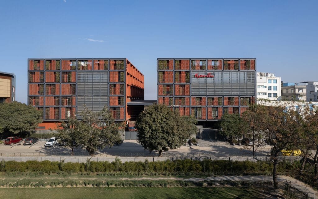 Every building tells a story, not just of structure, but of its soul. With The Twin Habitat, designed for Fybros in Sector 63, Noida, Vinod Singhi & Ranju Singhi, Principal Architects at Basics Architects set out to redefine what an industrial space can be. Spread across a 4,440 sq. m site with a total built-up of 1,80,000 sq. ft of warehouse including 36,000 sq. ft of commercial office space, crafted not just for efficiency, but also for well-being. “What began as a brief to build a functional industrial facility evolved into something more meaningful: a nature-embracing, future-ready, user-first habitat that blends the rugged spirit of industry with the calm, restorative rhythm of nature”, shares Vinod.