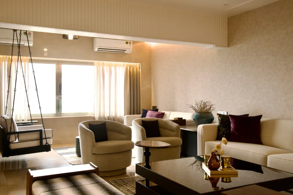 The Usha Kiran Residence designed by Shibani Mehta, Principle Designer of Naksh Design Studio is a harmonious blend of tranquillity and opulence. Every space in this zen oasis is meticulously curated to foster peace, mindfulness, and a deep connection to nature.