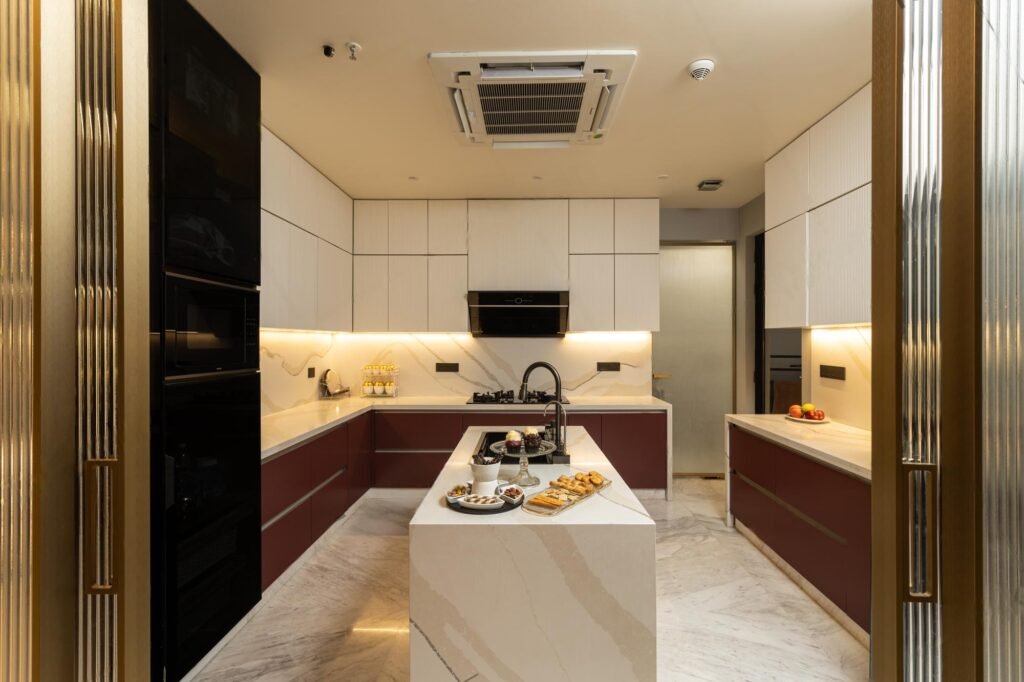 “With the client’s vision of a spacious kitchen and expansive areas for hosting gatherings, we designed the apartment to embody both grandeur and warmth. The result is a space that blends elegance with contemporary style, perfectly tailored for entertaining, yet refined in its uniqueness,” shares Vardha.