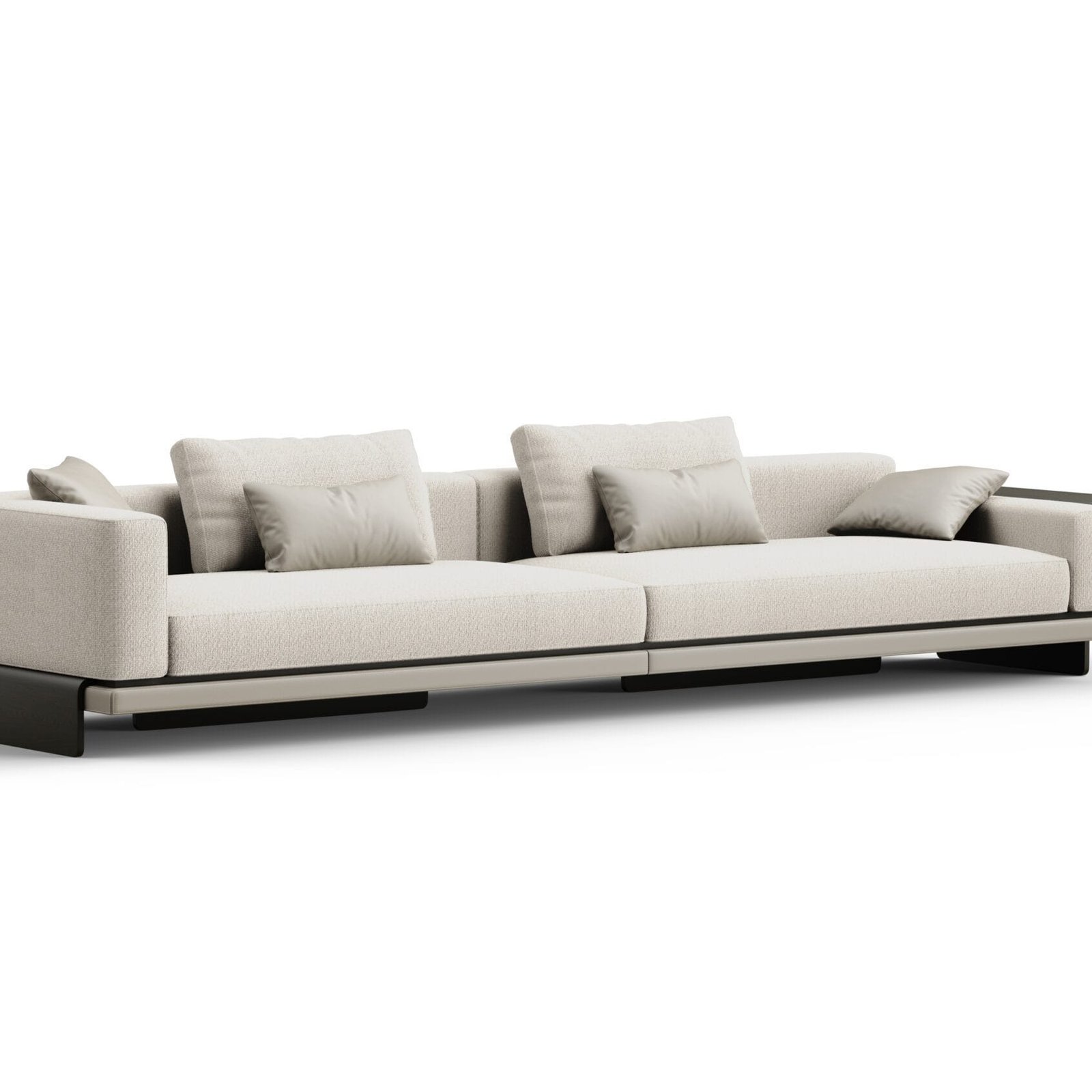 This wooden detail extends seamlessly into an integrated side table, available on one or both ends, enhancing both functionality and visual continuity. The thoughtful integration allows the sofa to serve as more than just seating; it becomes a versatile anchor within the living space, responding intuitively to everyday needs while maintaining a composed aesthetic. Conceived as a modular system, the Aven Sofa adapts effortlessly to evolving spatial requirements. Its flexible configurations make it suitable for a range of layouts, from compact urban settings to expansive living rooms, without compromising on its refined presence.