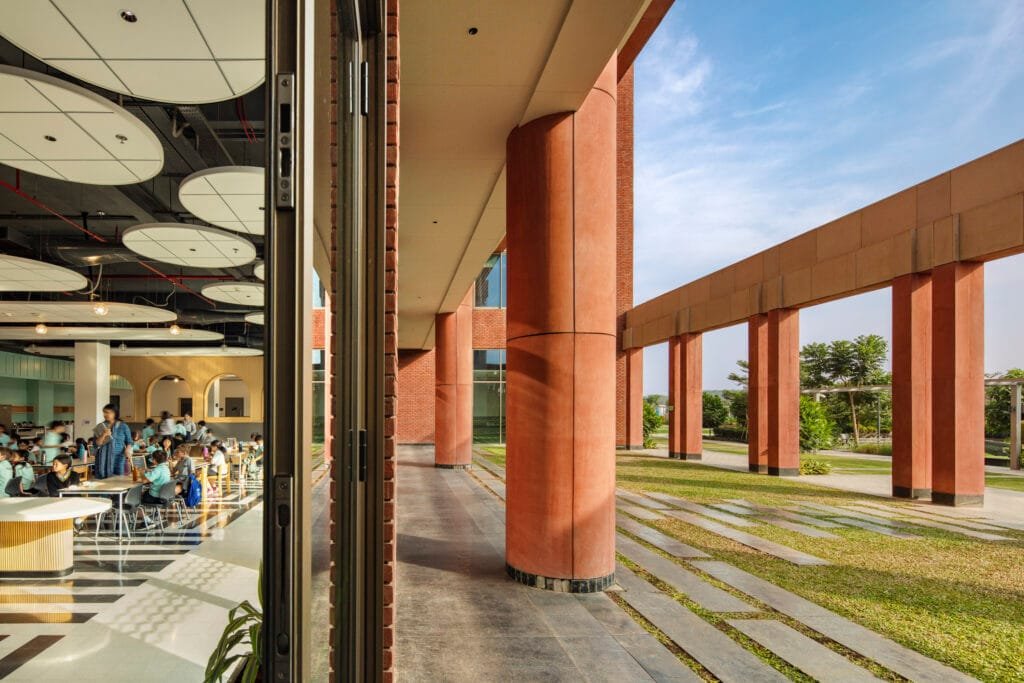Complementing this is the overall authenticity of the structure, flow of spaces and use of earthy materials. The arches of the school are contemporised and simplified in form, framing views, softening pathways, and evoking a sense of rhythm across the campus. In this context, the material palette of the exterior extends into the interior, and the arch becomes a unifying symbol that bridges both styles. In designing Wellington College International, a historic educational legacy is reinterpreted to suit the 21st-century context of Pune. In a city shaped by British colonial heritage, the archetypal school structure is reimagined as an institution that is more than a place for instruction. It is where learners are also co-creators of a structure’s vibrant and evolving community.